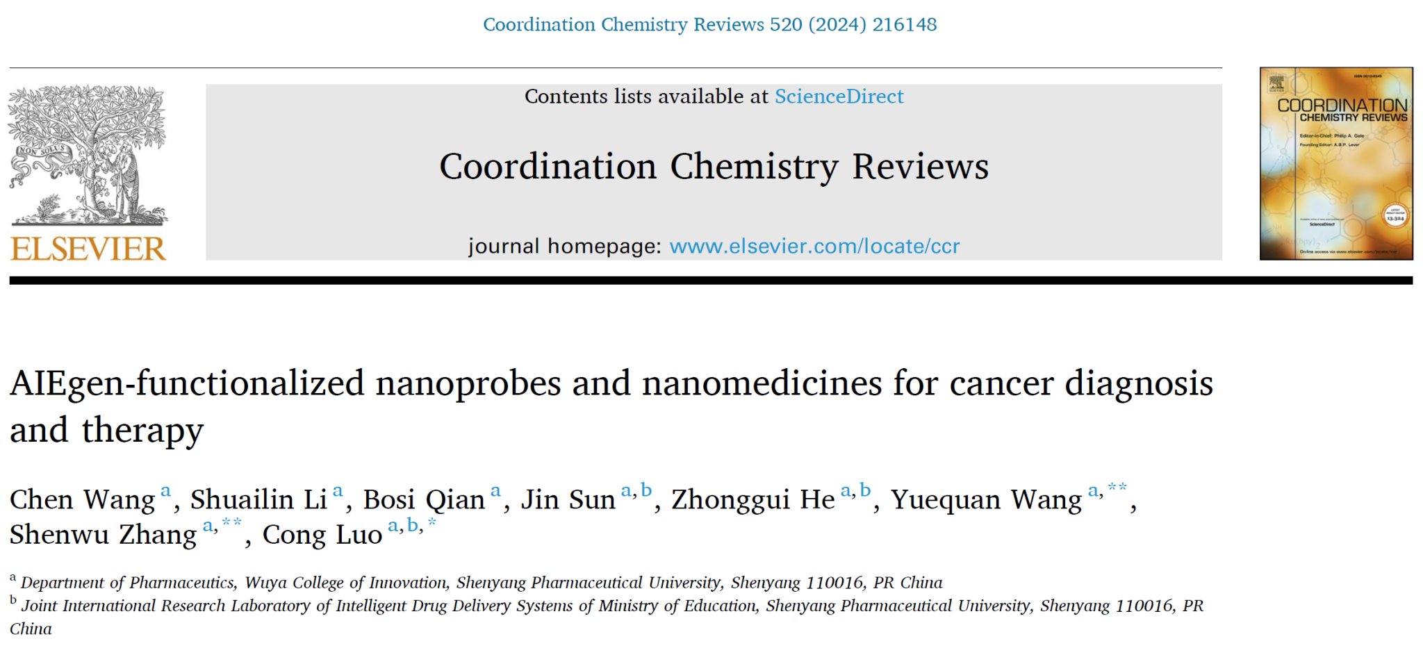 pa电子官方网站罗聪课题组在Coordination Chemistry Reviews发表AIE纳米探针和纳米药物综述文章