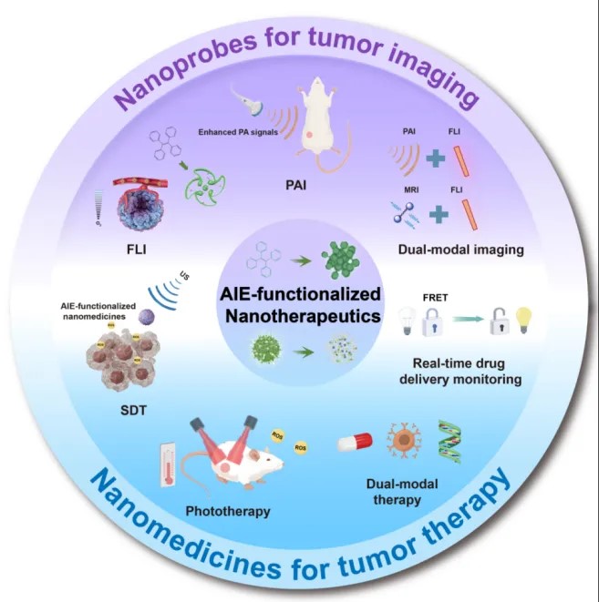 1. 用于癌症诊断和治疗的AIEgen功能化纳米探针和纳米药物的示意图