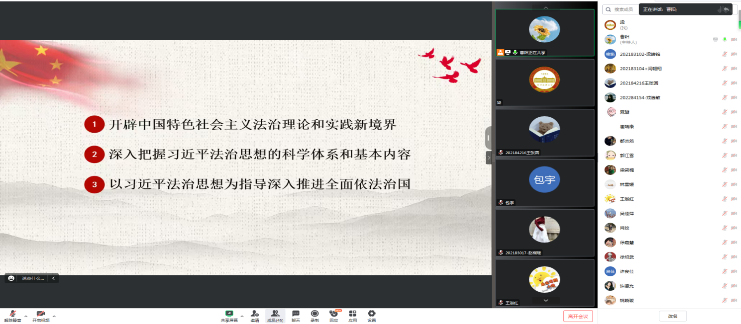 6月7日pa电子官方网站党委召开全院政治理论学习会议,主题为深入学习习近平法治思想,同时原原本本学习《党章》第一章至第五章。学院师生党员参会,党委组织员曹阳主持。